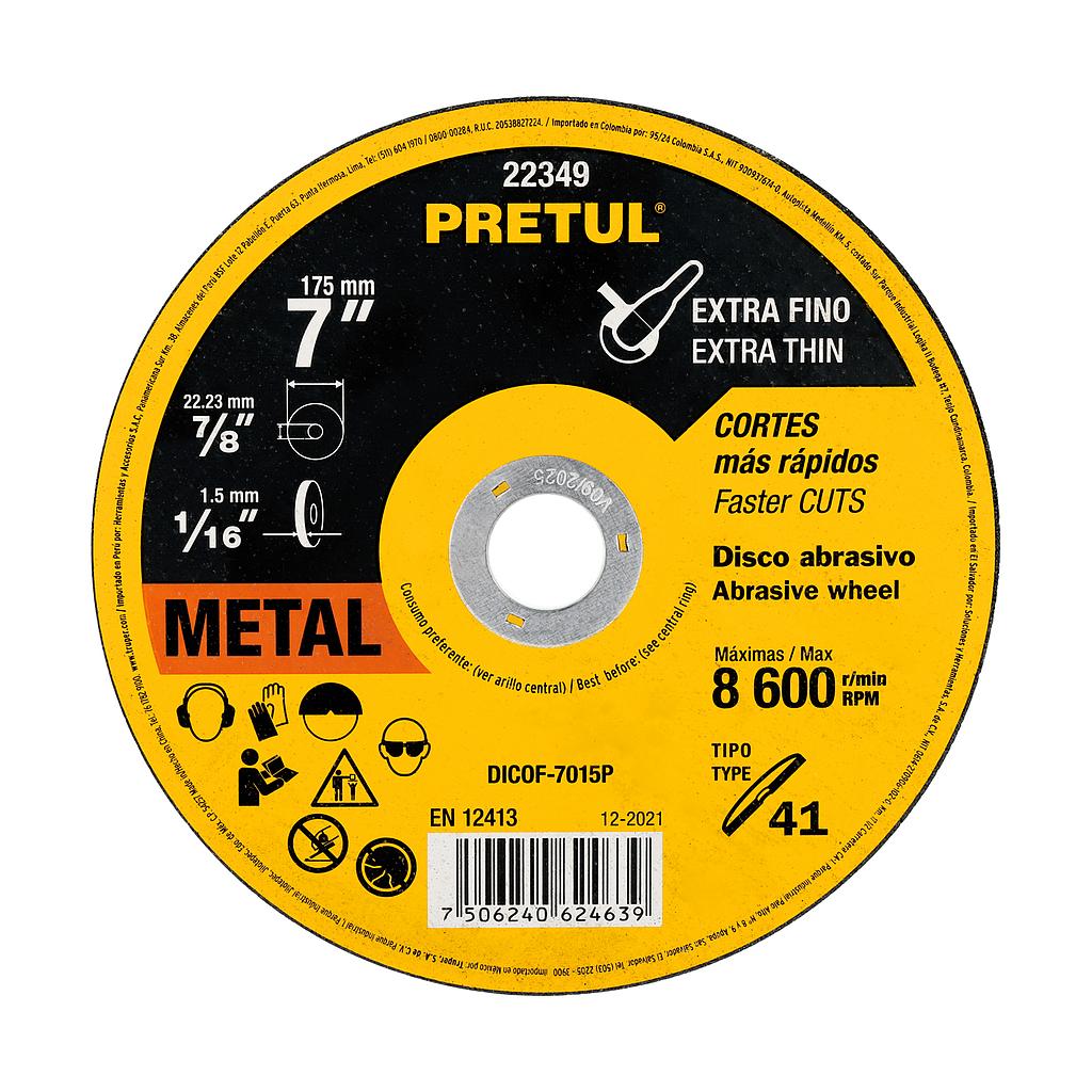 DISCO P/METAL 7X1/16X7/8 1.5MM T1 USO GRAL PRETUL 22349